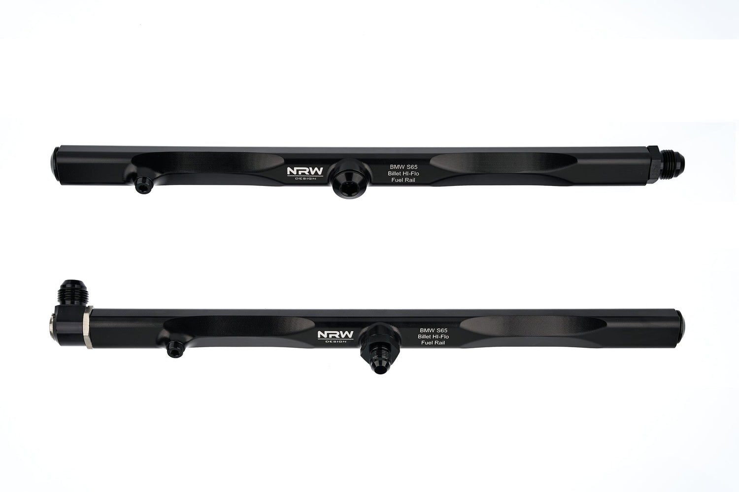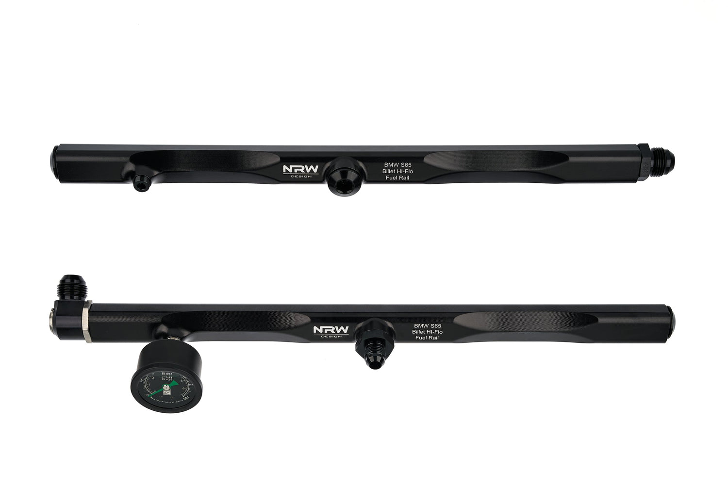Our E9x S65 Billet fuel rails are here! These are a direct plug and play system that solves the latest issues of the OEM fuel rails leaking due to age and wear at the non serviceable cross line hose. Our fuel rails are made from 6061 T6 billet aluminum and anodized for longevity and just plain sexy. These billet fuel rails use Racetronix AN fittings and Radium EFI hoses rated for both Gas and E85 use. With the use of ORB/AN fittings one can run the closed loop system as its currently offered or those looking to upgrade their fuel system to run a return system a simple ORB/AN fitting will give you that option to plumb the return line back to the tank or fuel pressure regulator. We have incorporated a 1/8 NPT female port for those that would like to run an analog fuel pressure gauge, or those running stand alone systems are able to run an AIM fuel pressure sensor to monitor fuel pressure right at the rail itself. Giving the most accurate data for fuel pressure and injector tuning. Our rails come complete with all lines hoses and AN/ORB fittings needed to run this on any stock car setup. The customer has the option of selecting the inline fuel filter hose to be able to connect with our hot selling inline fuel filter. This gives you the ultimate upgrade to anyone looking to upgrade their fueling system under the hood. We do offer the Radium fuel pressure gauge as an add on but any 1/8 NPT fuel gauge will work in its place. Note: you will need to use appropriate thread locker for NPT fittings.